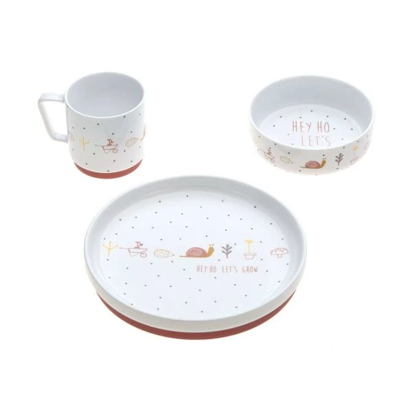 Met de Laessig Garden Explorer Dinerset Porselein Snail heb je een een complete set voor je kindje. De set bestaat uit een bordje, mokje en een kommetje voor kleine maaltijden. Alle items zijn voorzien van een leuk printje.